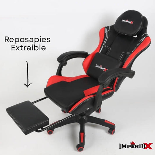Silla Gamer Roja IMPERIUX + Tapizado en Carbono + Masajeador + Reposapies