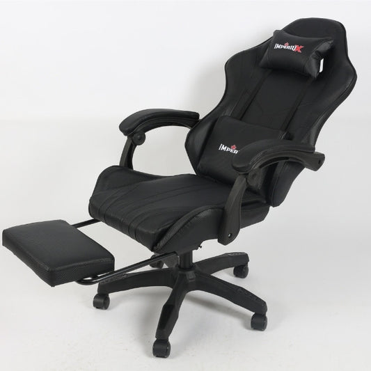Silla Gamer Negra IMPERIUX + Tapizado en Carbono + Masajeador + Reposapies