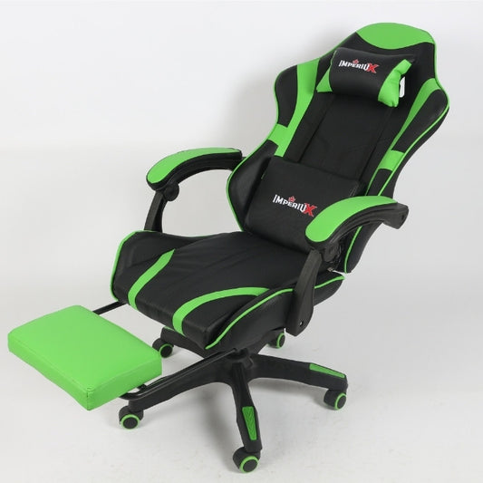 Silla Gamer Verde IMPERIUX + Tapizado en Carbono + Masajeador + Reposapies