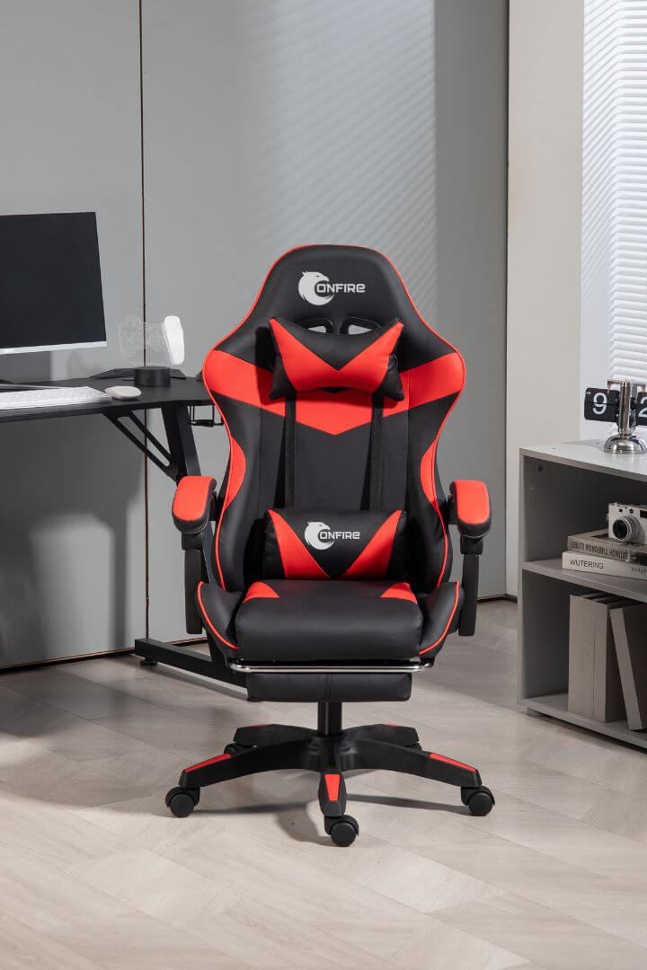 Silla Gamer Roja IMPERIUX + Tapizado en Carbono + Masajeador + Reposapies