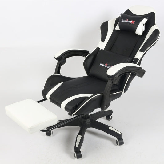 Silla Gamer Gris IMPERIUX + Tapizado en Carbono + Masajeador + Reposapies